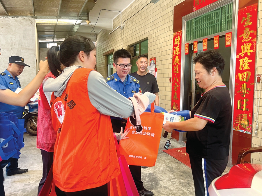 入戶宣傳法律知識。 惠州日報記者李燕文 特約通訊員楊小青 攝
