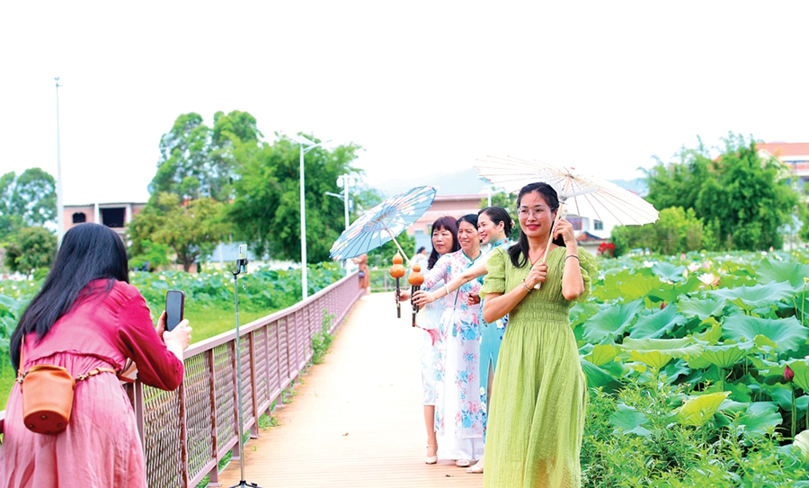 仲夏時節(jié),荷花次第開放,約上三五好友,徜徉其間,絕對是一種愜意的享受。近日,博羅縣石壩鎮(zhèn)三嘉村的“荷塘月色”再次火出圈。惠城、河源、東莞、深圳、廣州等地的游人,慕名前來,攪熱了三嘉村。