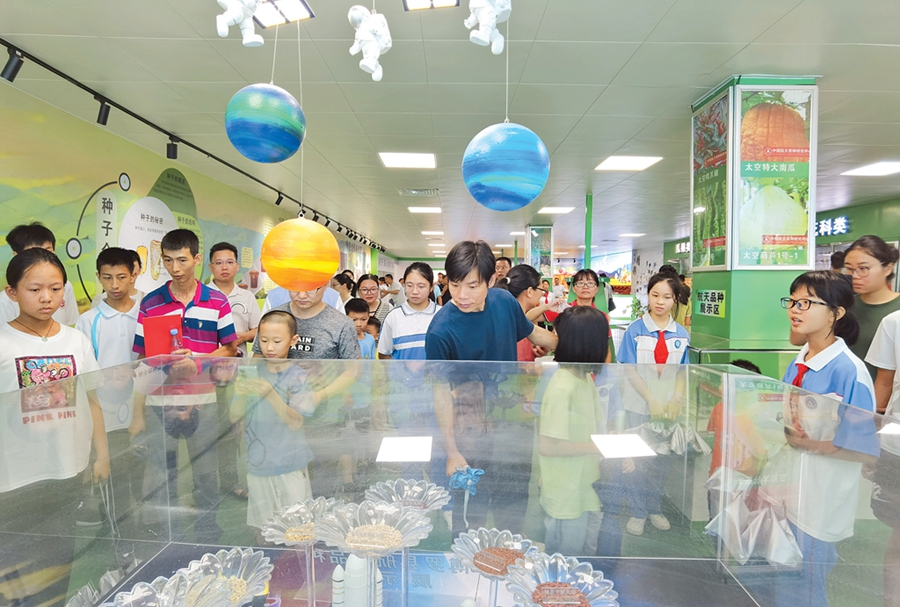 青少年在縣農(nóng)業(yè)科技示范場參觀。