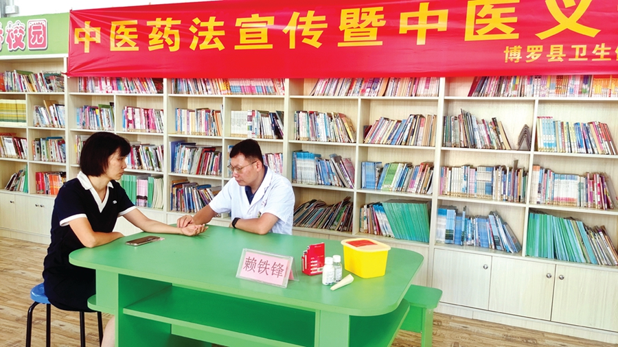 “久坐對腰椎和肩頸不好,平常也要注意坐姿。”“針灸能夠緩解這個癥狀,待會可以體驗一下。”在柏塘中心小學的課室內(nèi),來自博羅縣中醫(yī)醫(yī)院、柏塘鎮(zhèn)衛(wèi)生院等醫(yī)院的醫(yī)生分別為該校教職工開展中醫(yī)問診、中醫(yī)推拿、針灸、三伏貼等中醫(yī)藥特色義診服務。博羅縣衛(wèi)生健康局、柏塘鎮(zhèn)衛(wèi)生院、博羅縣育苗家庭教育促進會等部門機構(gòu)還為該校教職工準備了養(yǎng)生茶飲等藥膳。