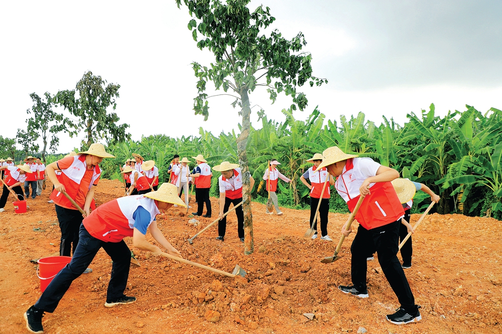 8月4日,博羅在該縣園洲鎮(zhèn)開展植樹活動,黨員干部、志愿者、大學(xué)生、當(dāng)?shù)厝罕姷裙?00多人,一起在振興大道兩旁植綠,種下秋楓樹、黃花風(fēng)鈴木等近1000棵,為“綠美廣東·博羅行動”的實施貢獻(xiàn)力量。