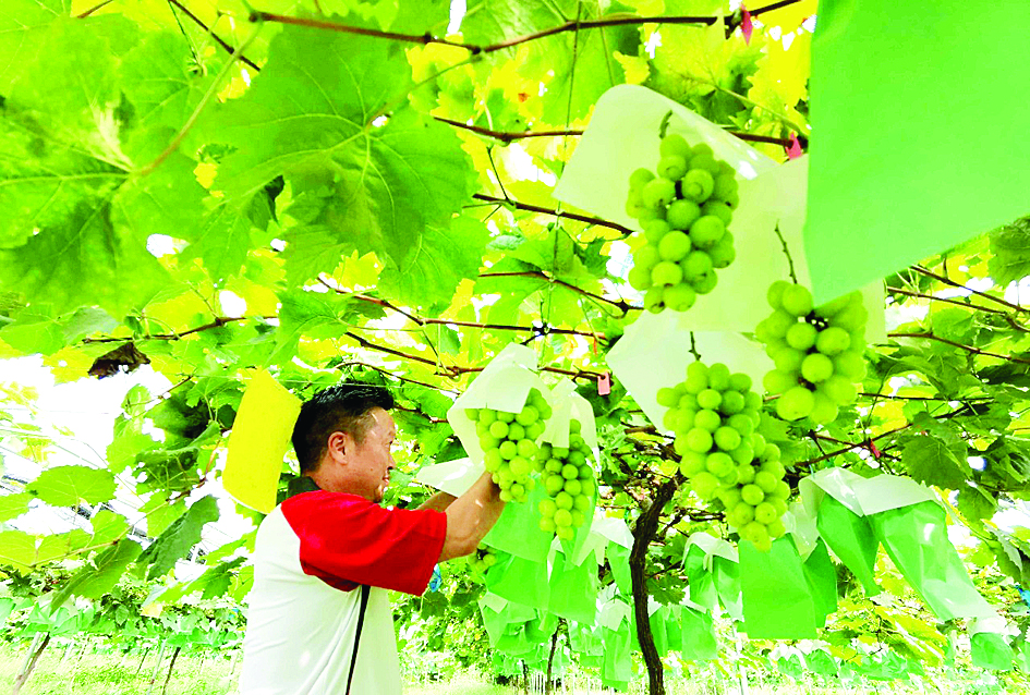 陽光玫瑰葡萄掛滿枝頭。 惠州日報記者李燕文 黃桃 特約通訊員陳惠嫻 攝
