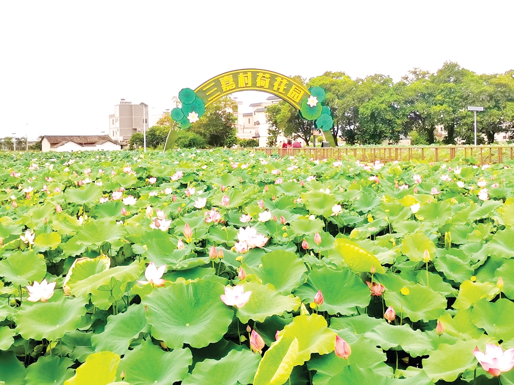 三嘉村百畝荷花園。