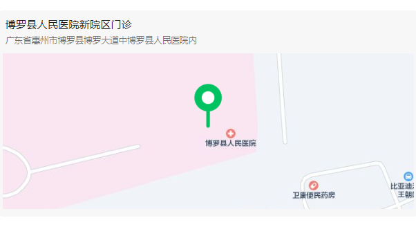 在地圖應用輸入“博羅縣人民醫(yī)院新院”即可導航到達。