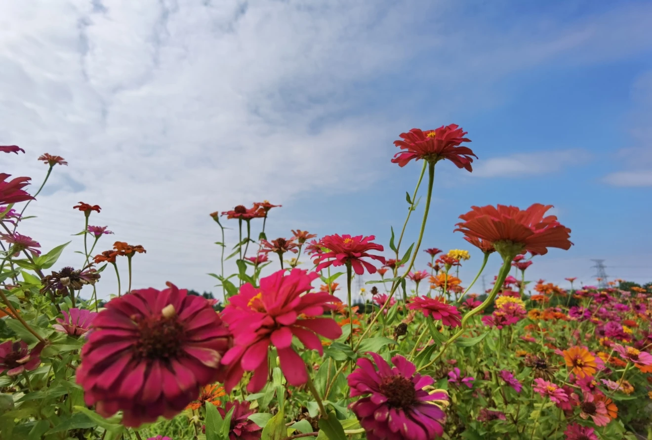在機(jī)耕路兩旁,各色花兒綻放,迎風(fēng)搖曳,不時還有蜜蜂和蝴蝶在花兒周圍追逐,為這幅美麗的自然畫卷增添了絲絲靈氣。