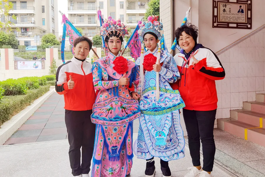 孩子們對粵曲熱愛的背后,得益于學(xué)校將粵曲作為學(xué)校第二課堂來打造。為傳承地方優(yōu)秀傳統(tǒng)文化,園洲中心小學(xué)全力打造以“粵劇傳承教育”為特色的校園文化品牌。2017年,該校被定為“粵劇傳承基地”,園洲粵曲以第二課堂的形式進(jìn)入校園,通過粵曲傳唱、美術(shù)繪畫、鄉(xiāng)村少年宮活動等形式,讓孩子們學(xué)習(xí)園洲粵曲文化。2023年1月,該校還獲評“廣東省中小學(xué)中華優(yōu)秀傳統(tǒng)文化傳承學(xué)校”。
