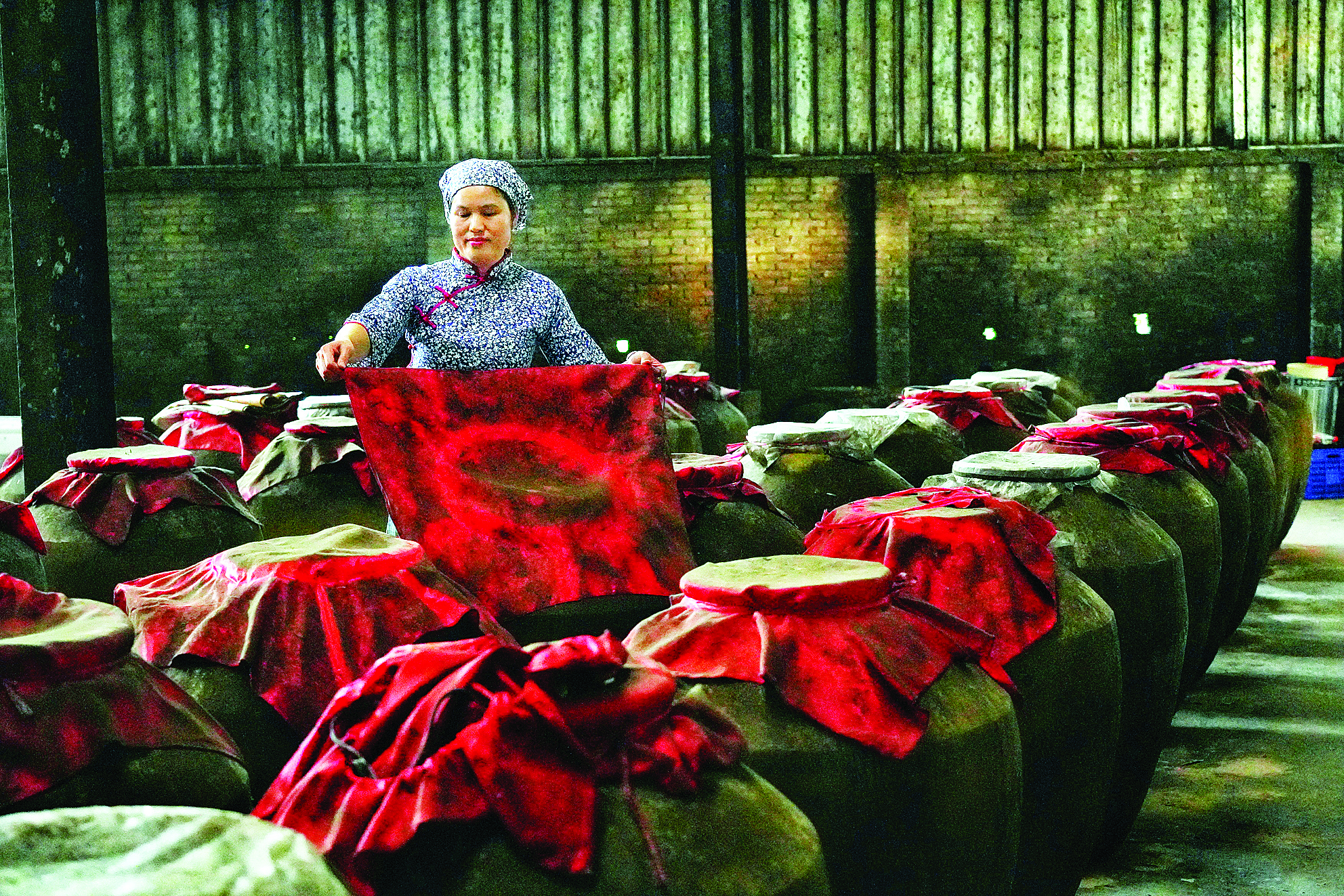 楊容添和妻子毛偉英一起把酒曲壓散成粉狀,與熟米飯拌勻,再裝到干凈的瓷罐中。