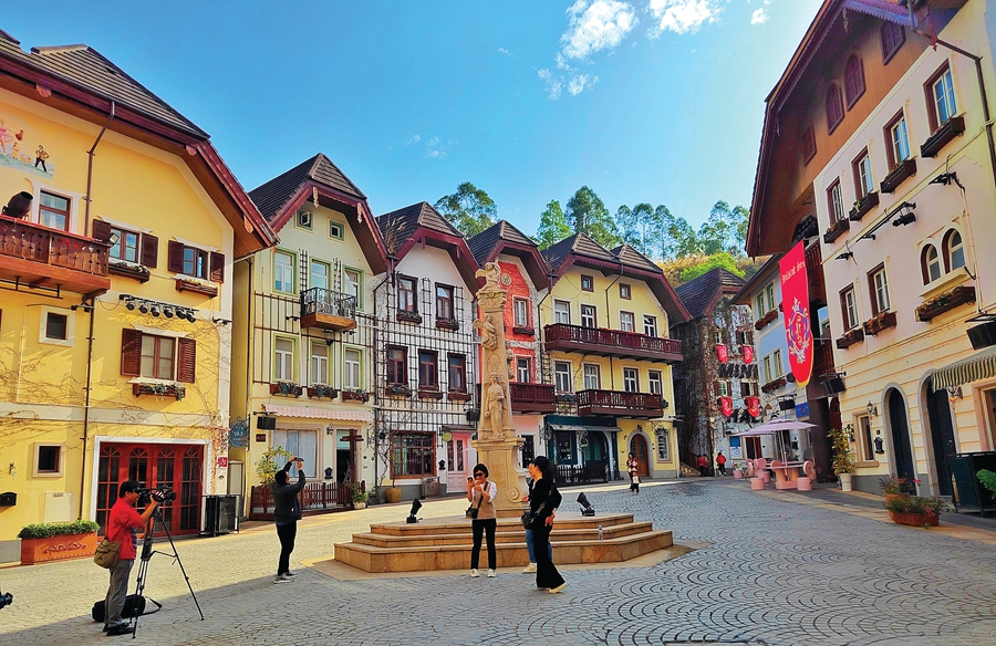 “我們景區(qū)不大,但去年的營(yíng)收還是比較理想和滿意的。”五礦·哈施塔特文旅景區(qū)旅游事務(wù)部總監(jiān)譚穗生表示,小鎮(zhèn)設(shè)計(jì)之初就決定切入主題式的差異化旅游賽道。小鎮(zhèn)三面環(huán)山,外觀設(shè)計(jì)復(fù)刻了奧地利哈爾施塔特小鎮(zhèn)的鄉(xiāng)村景觀。10年前,獨(dú)特的歐陸風(fēng)情建筑群設(shè)計(jì)讓小鎮(zhèn)一炮走紅,吸引了一大批觀光游客,成為當(dāng)時(shí)華南地區(qū)最大的婚拍攝影基地。2015年,小鎮(zhèn)被評(píng)為國家4A級(jí)旅游景區(qū),陸續(xù)攬獲“千企千鎮(zhèn)工程項(xiàng)目”“中奧文化交流示范鎮(zhèn)”等榮譽(yù)稱號(hào)。