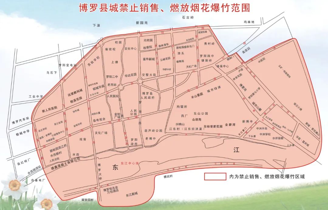 為進(jìn)一步做好博羅縣城禁止銷(xiāo)售和燃放煙花爆竹的管理工作,避免火災(zāi)、爆炸等傷亡事故的發(fā)生,保障人民群眾生命財(cái)產(chǎn)安全和維護(hù)社會(huì)秩序,根據(jù)《中華人民共和國(guó)治安管理處罰法》《煙花爆竹安全管理?xiàng)l例》等有關(guān)規(guī)定,現(xiàn)就禁止在縣城禁放區(qū)范圍內(nèi)銷(xiāo)售和燃放煙花爆竹有關(guān)事項(xiàng)通告如下:
