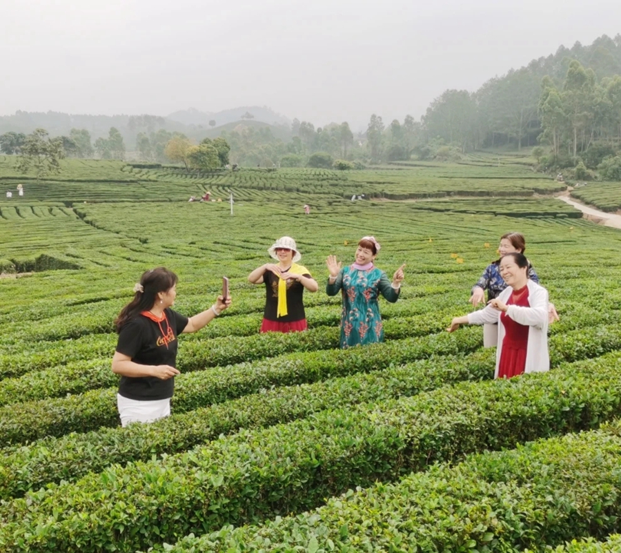 當(dāng)日天公作美,空氣中還帶著一層薄霧,舒適宜人。茶園中,不少茶農(nóng)正趁著春日采茶。遍滿山頭的茶樹(shù)像翻涌的碧波,美得讓人沉醉。萬(wàn)畝茶園內(nèi)游人絡(luò)繹不絕,來(lái)自廣州、深圳、佛山、東莞等地游客前來(lái)觀光旅游。游客們紛紛沿著棧道來(lái)到茶園,徜徉于綿延的茶山之上,穿梭在整齊的茶園里,看著青翠欲滴的茶芽擠滿了茶樹(shù)梢頭,呼吸著清新干凈的空氣,感受著春日的茶園之美。