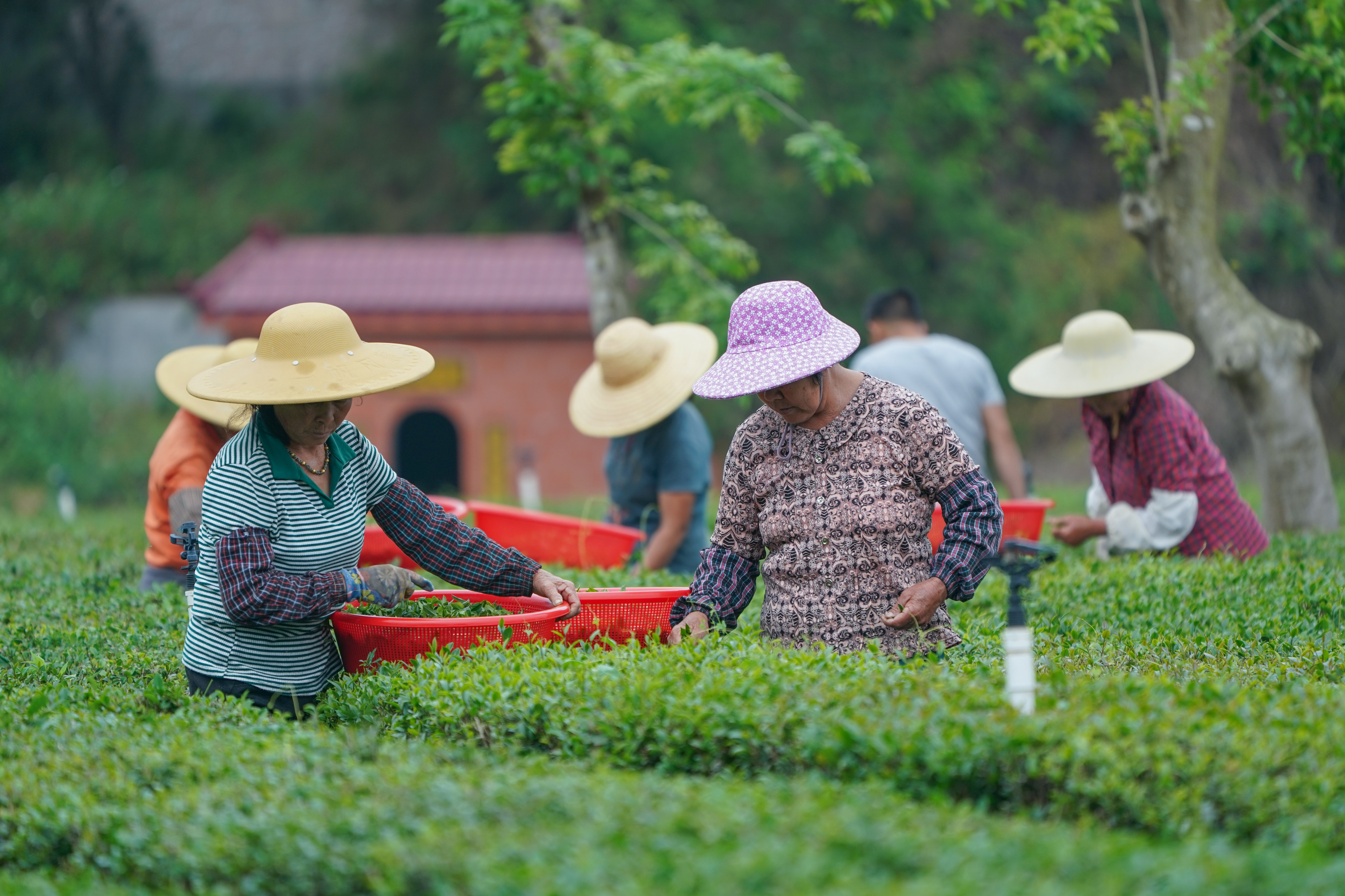 每到茶葉收獲季,茶園都會聘請村民幫忙采茶。惠州日報記者湯渝杭 攝