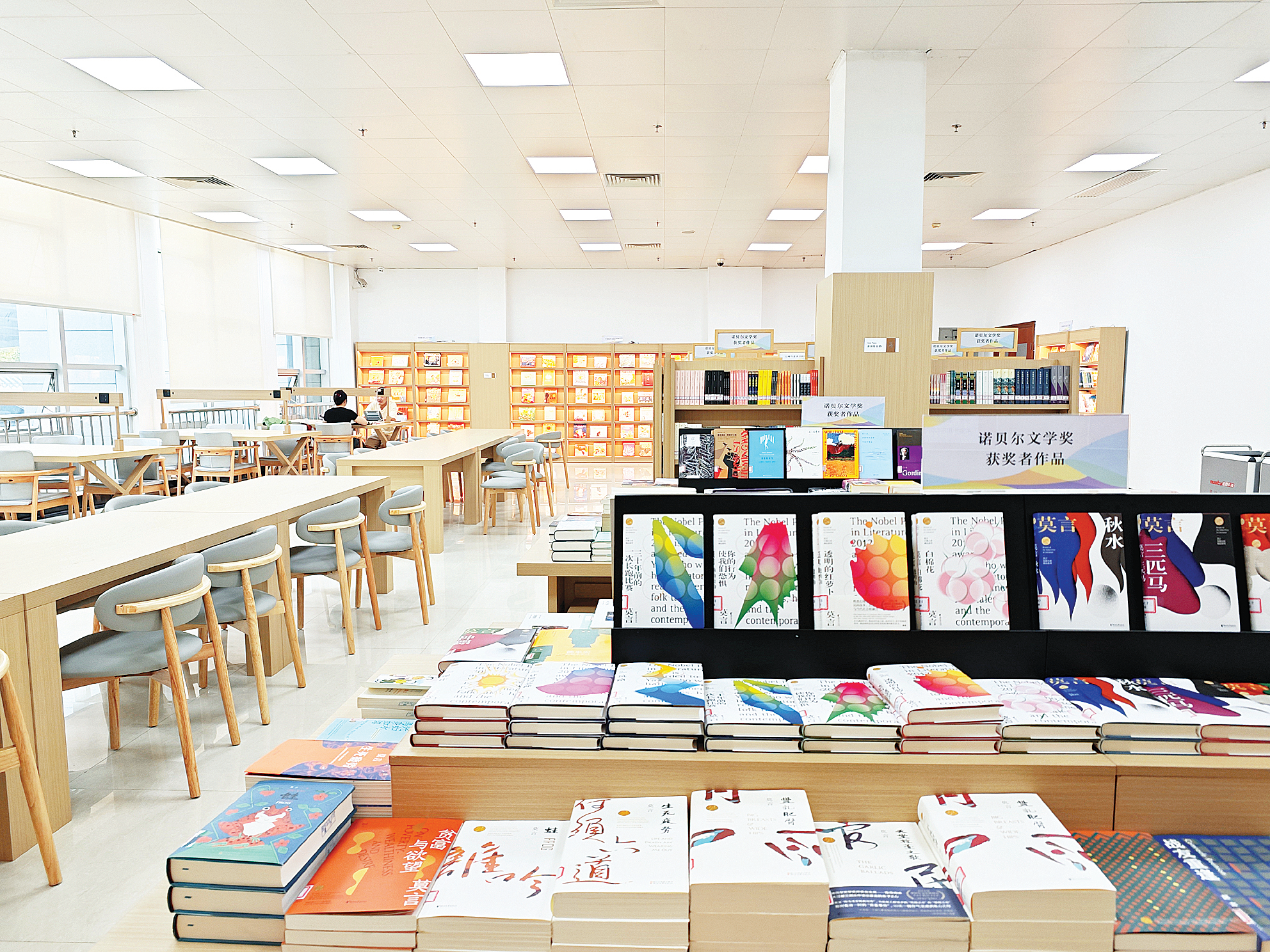 據(jù)了解,該主題自助借閱室共有藏書近4000冊(cè),其中包含了諾貝爾文學(xué)獎(jiǎng)獲獎(jiǎng)?wù)咦髌罚约袄仙嵛膶W(xué)獎(jiǎng)、魯迅文學(xué)獎(jiǎng)、茅盾文學(xué)獎(jiǎng)、全國(guó)優(yōu)秀兒童文學(xué)獎(jiǎng)、國(guó)家圖書館文津圖書獎(jiǎng)、美國(guó)普利策文學(xué)獎(jiǎng)、日本直木獎(jiǎng)、法國(guó)龔古爾文學(xué)獎(jiǎng)、英國(guó)布萊克文學(xué)獎(jiǎng)、世界科幻大會(huì)雨果獎(jiǎng)等知名獎(jiǎng)項(xiàng)獲獎(jiǎng)作品。此外,該借閱室還配備了自助借閱系統(tǒng)、圖書消毒機(jī)以及計(jì)算機(jī)設(shè)備供讀者使用,并設(shè)置了50個(gè)閱讀座席供讀者閱讀學(xué)習(xí)。
