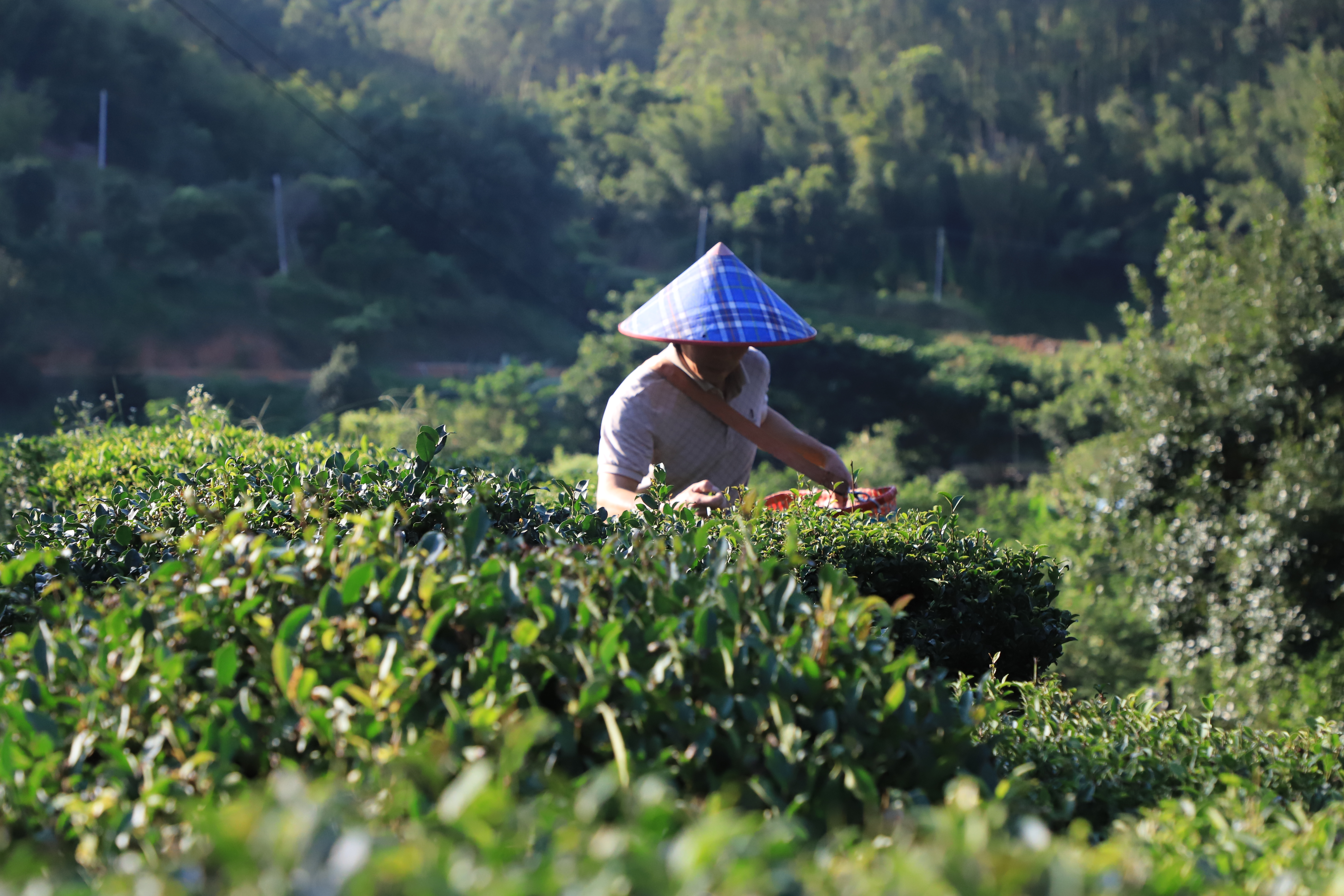 驅車沿著蜿蜒曲折的水泥山路進入仙人跡村民小組,頓感空氣清新,綠水青山讓人心曠神怡。經(jīng)過一段田間小路,來到一座小山嶺,小山嶺上層次分明地種著山茶。吸收了春天雨露的山茶綠油油的,鐘金如戴著草帽、挎著茶簍子正在采摘茶葉。茶林里不只是茶樹,還有一些雜樹。鐘金如說:“多樣性的樹木花草能提高茶青品質(zhì)。”從祖輩起,他家里就開始種茶,他從小喜歡采茶,如今種茶已有30多年。