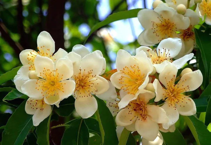 盛花期的木荷,滿(mǎn)樹(shù)白花,就像一朵朵小荷花立在枝頭,因此得名“木荷”。木荷花花瓣為白色,花心插滿(mǎn)黃色雄蕊。因?yàn)闃?shù)高,遠(yuǎn)遠(yuǎn)望去就像樹(shù)上開(kāi)滿(mǎn)白色荷花。倘若從木荷樹(shù)下路過(guò),會(huì)有淡淡清香縈繞。特別是在早晨,太陽(yáng)光透過(guò)木荷樹(shù)枝,感受陣陣花香,令人心曠神怡。