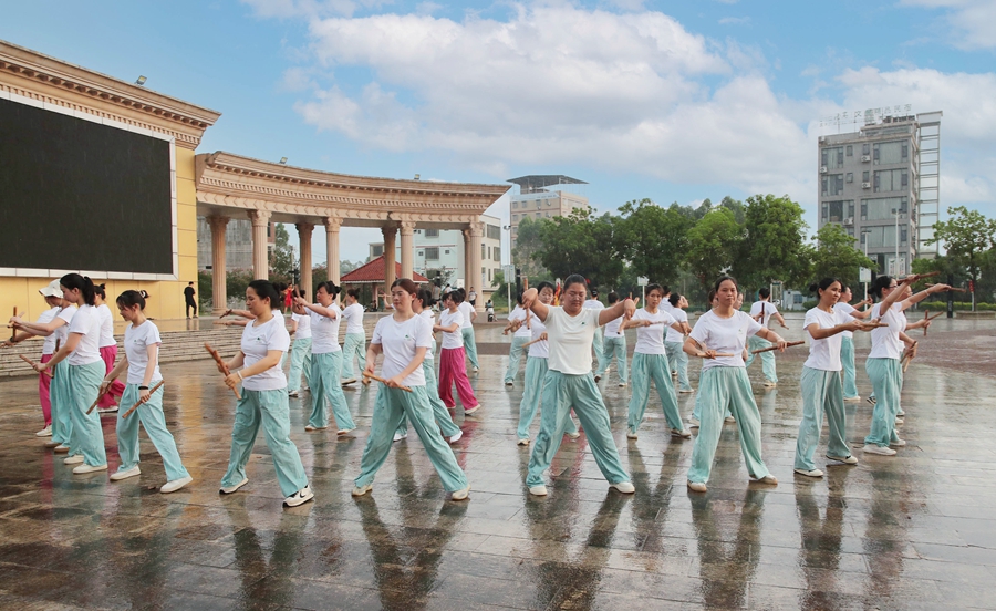 從零散到一個(gè)有機(jī)整體,從文化的對碰到融合,從一竅不通到熟練掌握要領(lǐng),從扭捏害羞到自然綻放……這是汗水的澆灌,是堅(jiān)持的結(jié)果,更是文化交融的體現(xiàn)。而今,每每麻陂紅女英歌隊(duì)排練總會(huì)吸引不少周邊群眾前來觀看。街坊們紛紛對這些英歌“花木蘭”投來羨慕和贊許的目光,仿佛當(dāng)年修筑紅女水庫的那幫“女將”又出現(xiàn)在大家面前:“動(dòng)作雖柔,但帶著力道,剛?cè)岵?jì),很颯!”