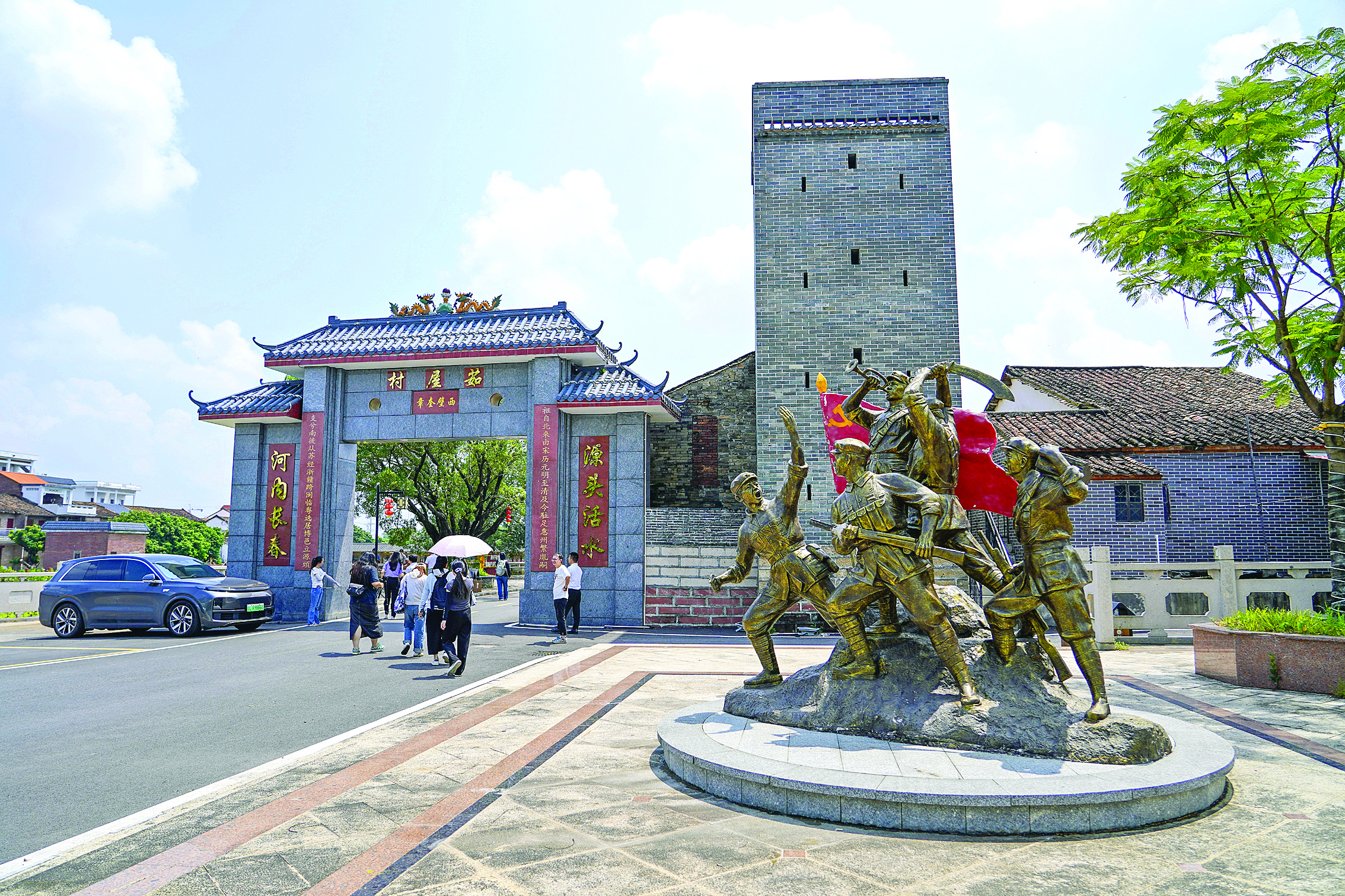 百年古樹(shù)枝繁葉茂、水上棧道古色古香、水車(chē)長(zhǎng)廊典雅別致……在石灣鎮(zhèn)源頭村茹屋村民小組,紅色水鄉(xiāng)的魅力讓人沉醉。抗日戰(zhàn)爭(zhēng)時(shí)期,茹屋村民小組是東江縱隊(duì)獨(dú)立第二大隊(duì)進(jìn)行革命活動(dòng)的重要據(jù)點(diǎn),茹屋之戰(zhàn)更是當(dāng)?shù)乜箲?zhàn)史的光輝一頁(yè)。紅色資源是最寶貴的精神財(cái)富。源頭村黨委書(shū)記、村委會(huì)主任李茹櫟旒介紹,近年來(lái),源頭村充分挖掘紅色文化資源,將生態(tài)、文化等要素融合,通過(guò)景觀打造、農(nóng)房風(fēng)貌提升、植綠增綠等,全面提升村莊顏值。