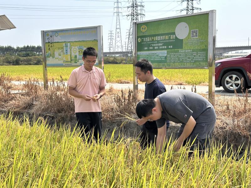 農(nóng)業(yè)專家與種植大戶在田間檢查水稻長勢。惠州日報記者盧泓宇 通訊員李麗 單志鴻 攝