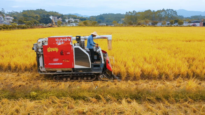 伴隨著機(jī)器的轟鳴聲,農(nóng)機(jī)手們駕駛著收割機(jī)在稻田中來(lái)回穿梭。一卷、一割間,金黃的稻谷就被“盡收囊中”,割稻、脫粒、粉碎秸稈等過(guò)程一氣呵成。