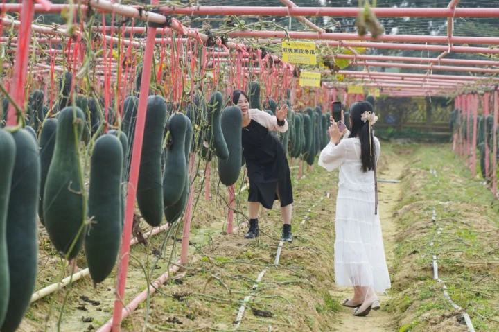 游客到場觀賞各類新奇的蔬果花卉。