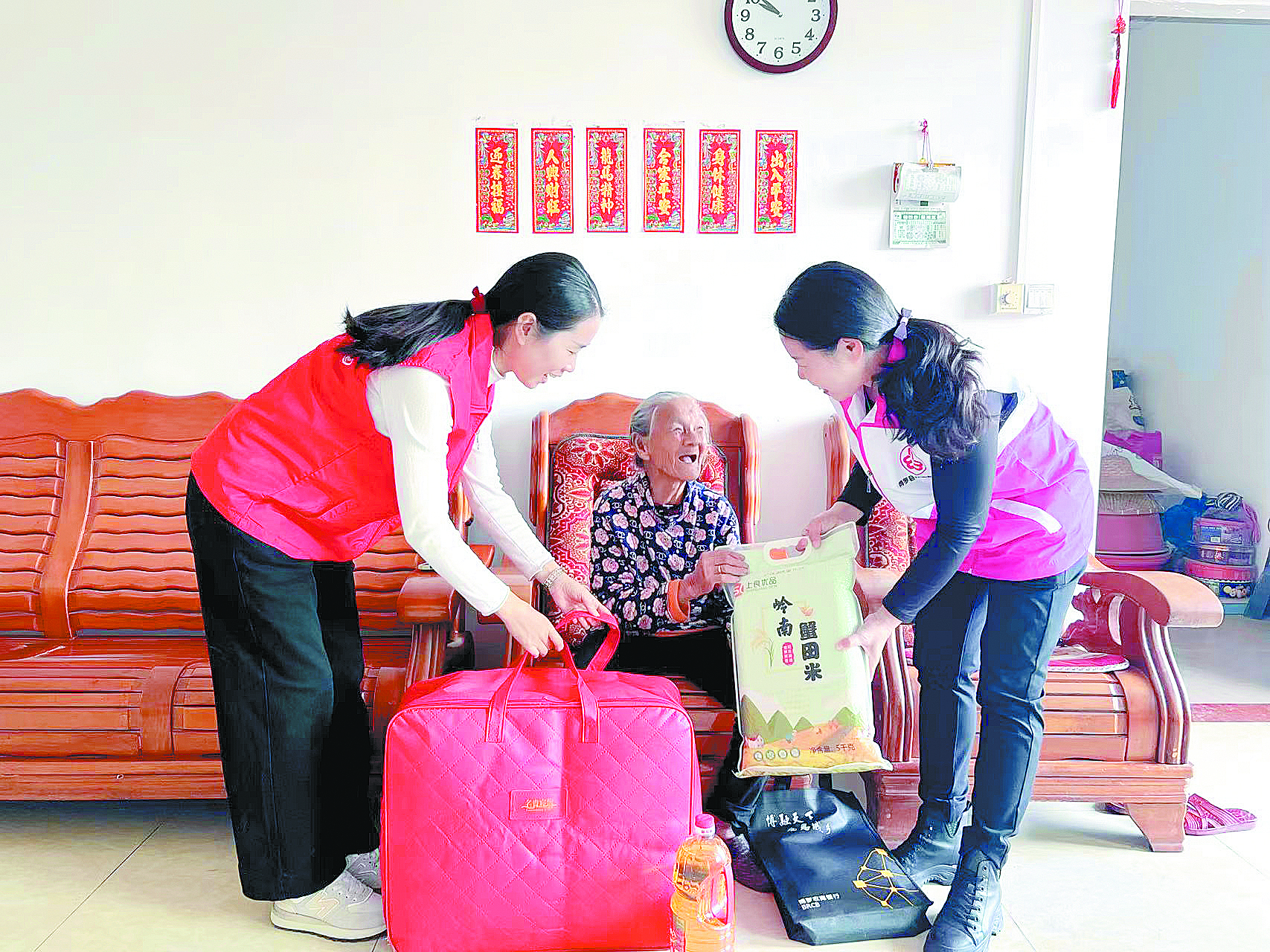 龍華鎮(zhèn)志愿者為村民送去慰問品。