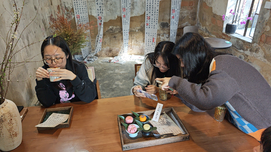 以傳統(tǒng)文化與新中式為亮點,打造一個“慢生活”氛圍的茶舍,是李文居近年來努力的方向。不急茶舍目前所在的老房子是李文居在2022年租下后修繕而成的。隨著運營的逐步優(yōu)化與客源的穩(wěn)定,茶舍也由原本的兩間房擴張到五間房。“每天看著客人們圍坐在一起談天說地,這種煙火氣的日常讓我很享受。”