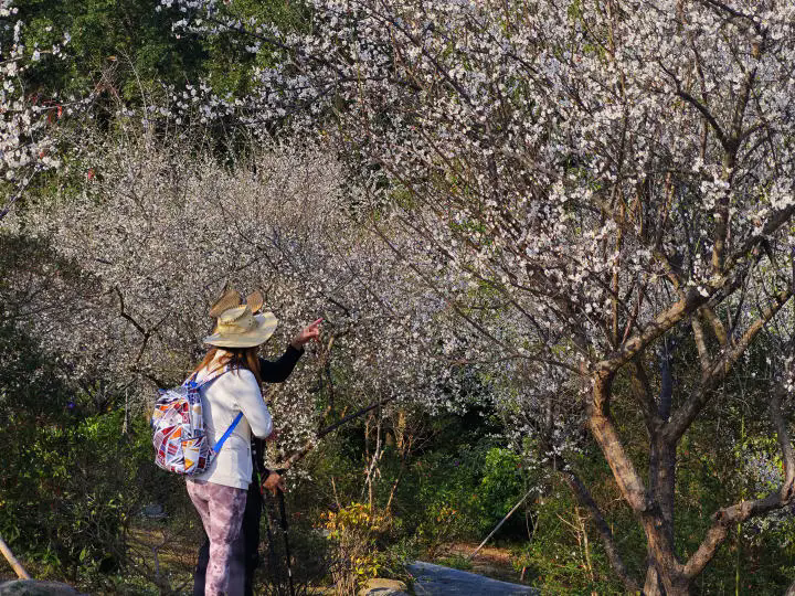 尋梅、探梅、賞梅,恰是冬日里的雅趣。在這寒冬臘月,于千萬花蕾?gòu)闹信既粚さ靡欢渚`放的梅花,細(xì)賞梅花潔白無瑕的花瓣,細(xì)嗅濃郁冷冽的花香。每至賞梅時(shí)節(jié),游客們皆被這小而美的梅花深深吸引,紛紛駐足長(zhǎng)留,以相機(jī)定格這美好瞬間。