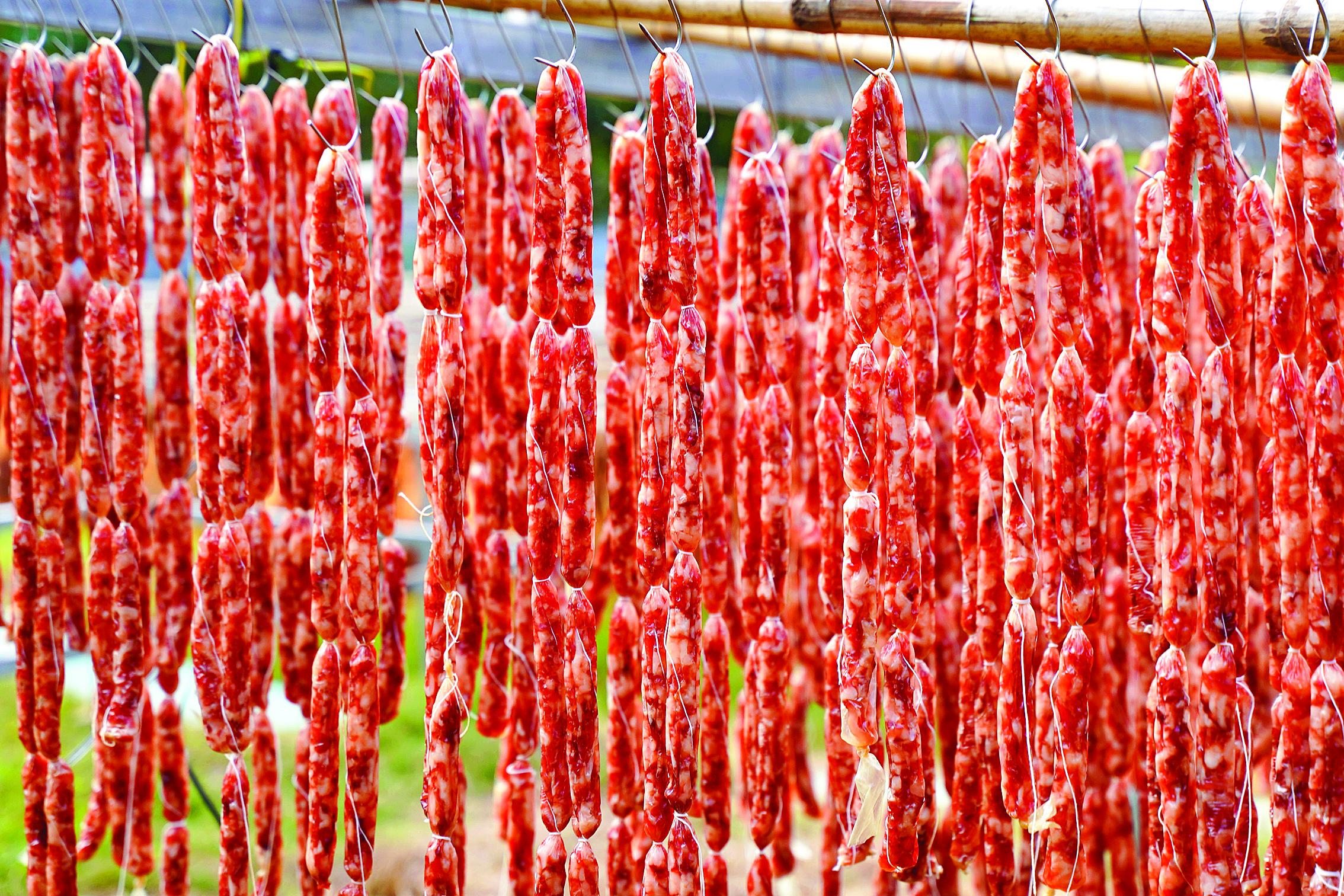 博羅橫河臘肉、臘腸、臘鴨等臘味一排排曬起