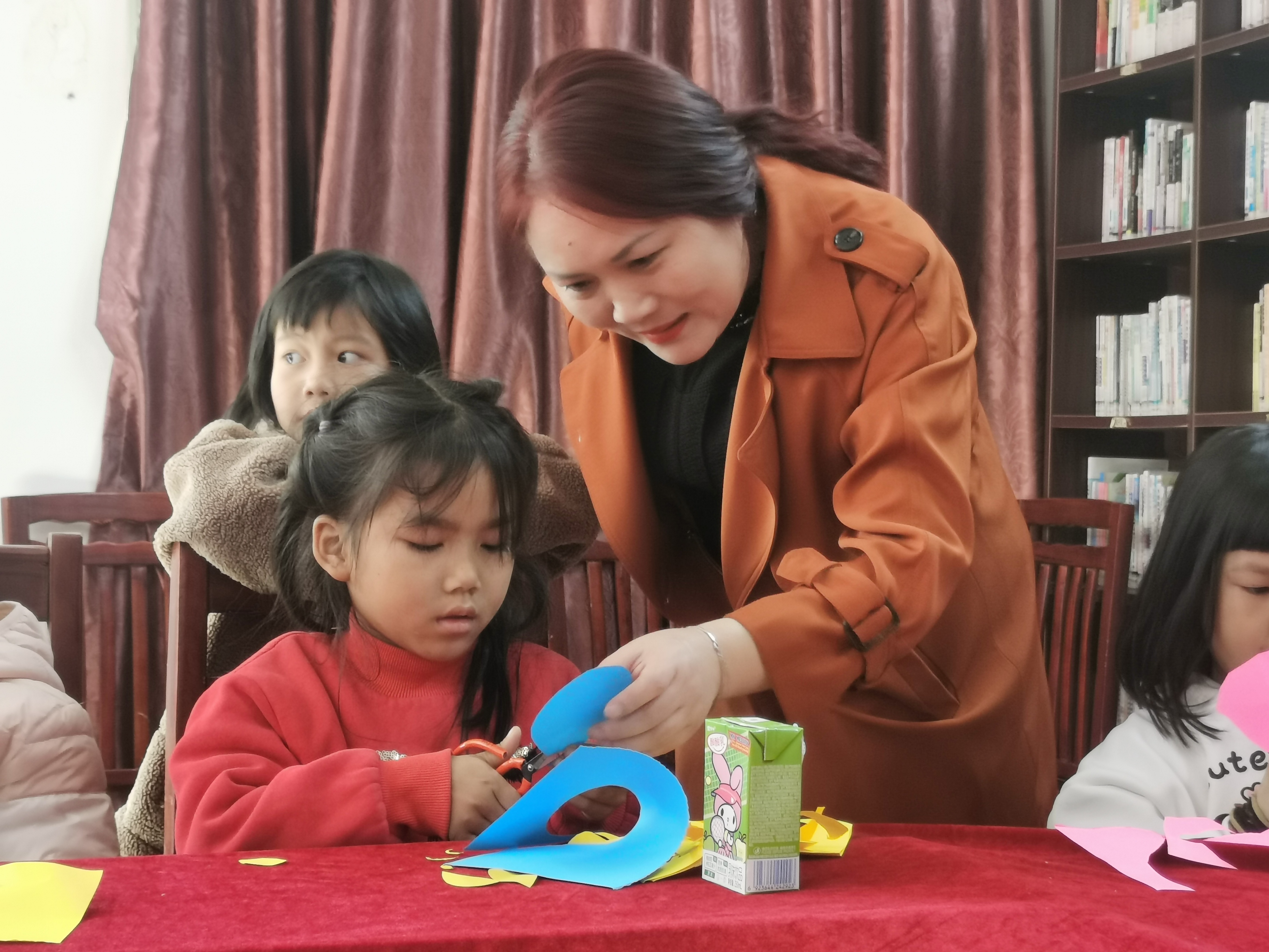 小朋友在練習(xí)剪紙。惠州日報記者朱麗婷 攝