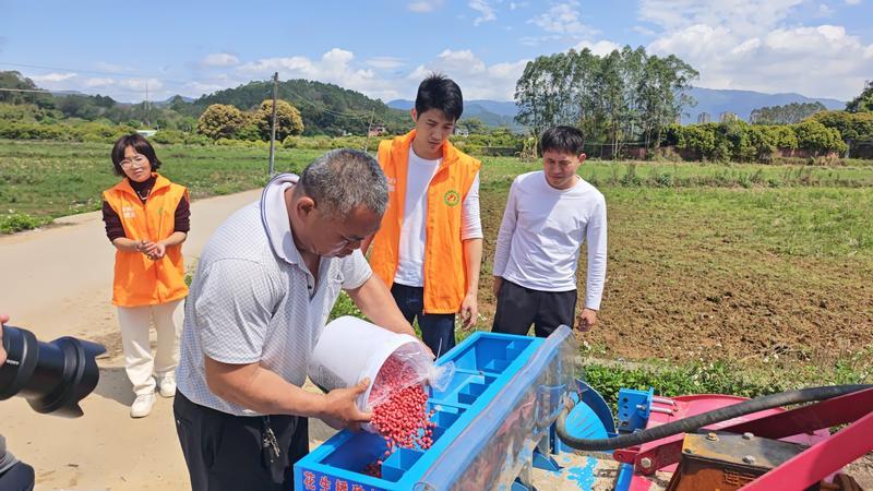 博羅縣農(nóng)業(yè)農(nóng)村綜合服務(wù)中心工作人員指導(dǎo)農(nóng)戶開展花生機械化種植。