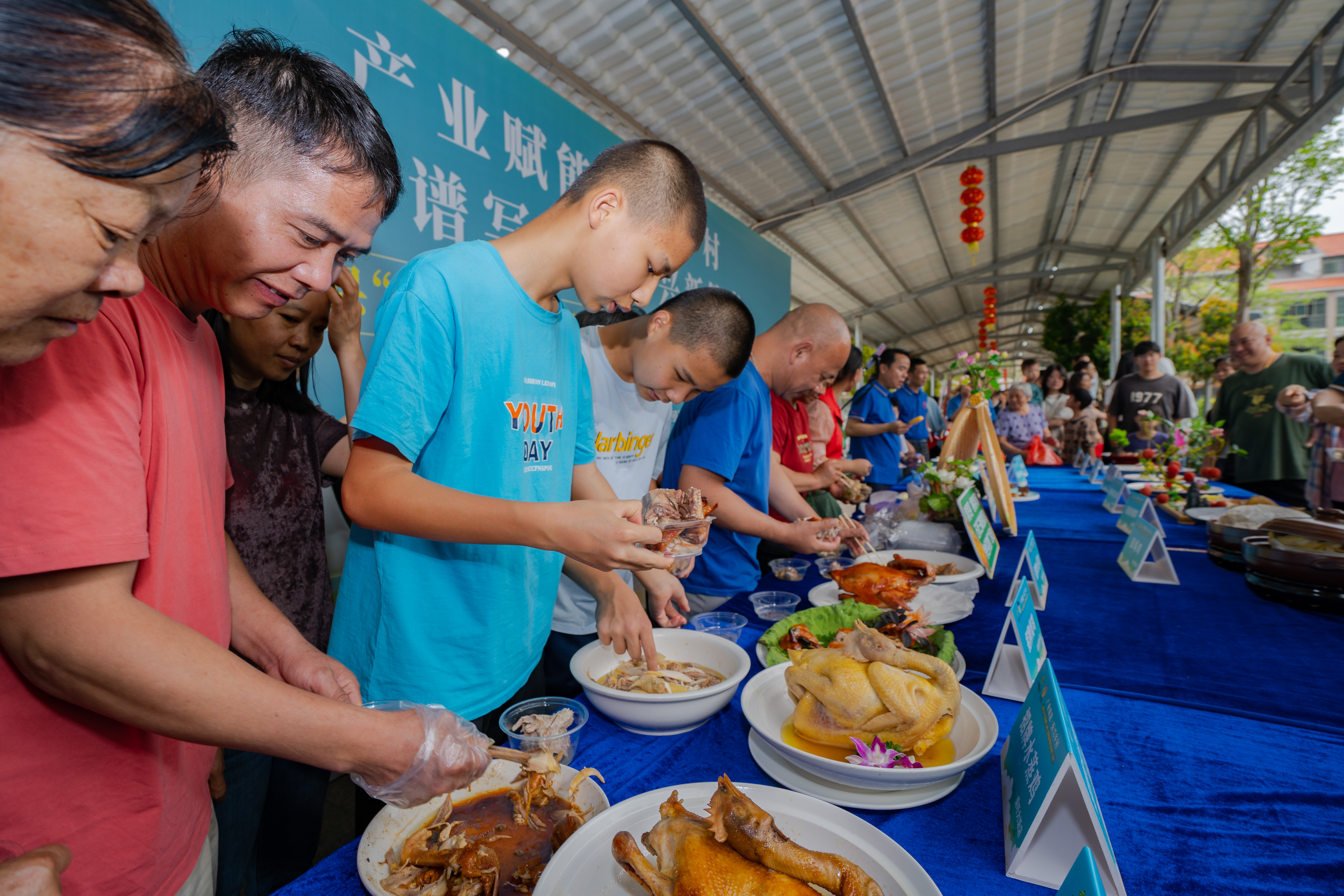 當(dāng)天,“雞”祥如意游園會(huì)成為人氣焦點(diǎn)。文化展示區(qū)通過(guò)圖文展板系統(tǒng)呈現(xiàn)三黃胡須雞的養(yǎng)殖歷史、嶺南農(nóng)耕文化脈絡(luò)及現(xiàn)代產(chǎn)業(yè)升級(jí)路徑,讓群眾與企業(yè)代表清晰感知產(chǎn)業(yè)發(fā)展脈絡(luò);企業(yè)展銷區(qū)匯聚當(dāng)?shù)佚堫^企業(yè),現(xiàn)場(chǎng)展示雞蛋、蛋卷、鹽焗雞等多種產(chǎn)品,搭建起產(chǎn)銷對(duì)接通道;美食廚藝區(qū)邀請(qǐng)10家本地餐飲單位以三黃胡須雞為主材,現(xiàn)場(chǎng)烹制白切雞、松露脆皮雞、菊花撈雞等經(jīng)典與創(chuàng)新菜品,展現(xiàn)石壩三黃胡須雞的多元烹飪可能。