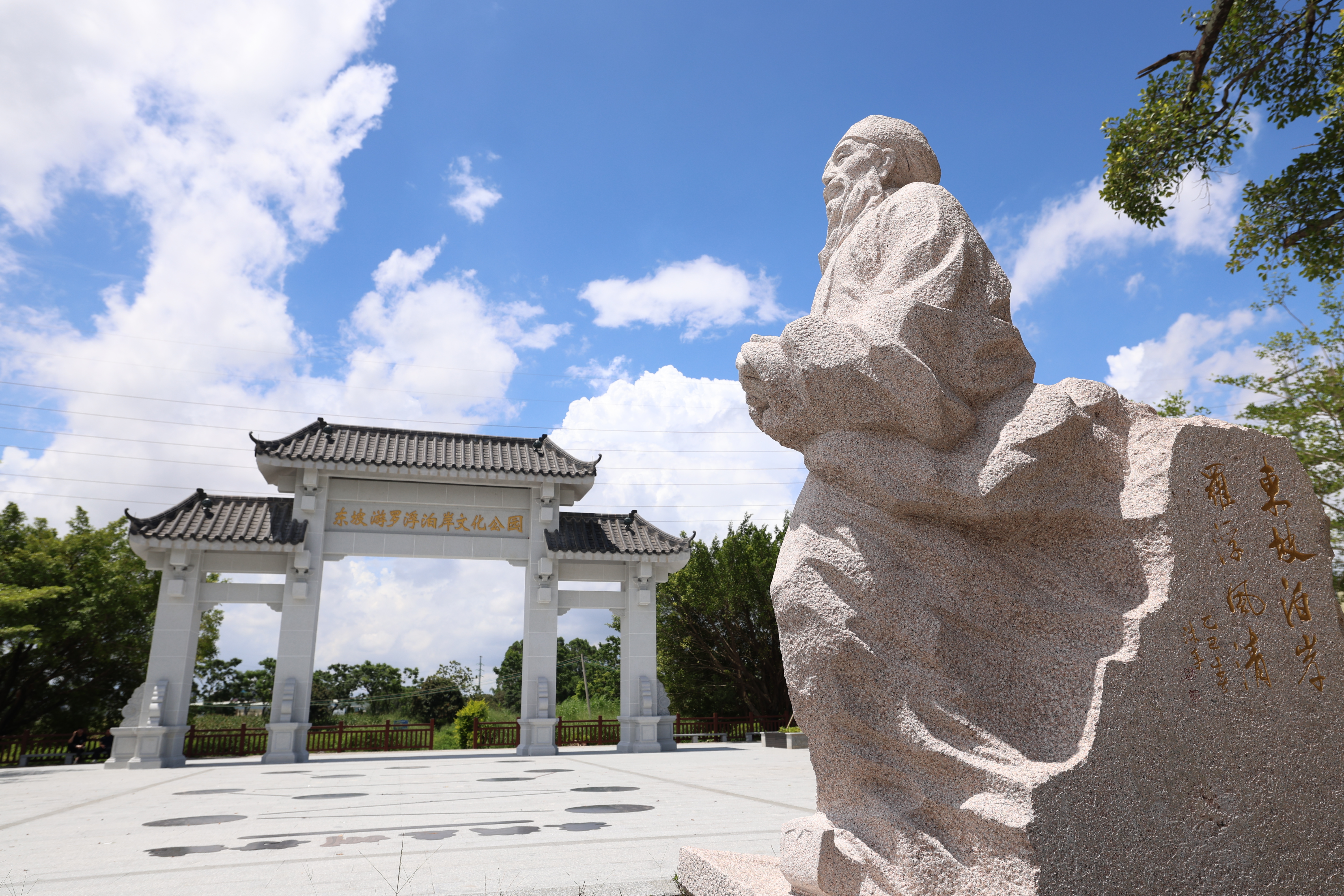 東坡游羅浮泊岸文化公園建設(shè)面積約4500平方米,以“東坡文化”為主題,不僅巧妙重現(xiàn)了蘇東坡泊舟登岸游羅浮的場(chǎng)景,還將其人生經(jīng)歷、官場(chǎng)宦游經(jīng)歷和經(jīng)典詩(shī)詞書畫等元素融入景觀建設(shè),形成古典詩(shī)意和文化氛圍濃厚的文化公園。