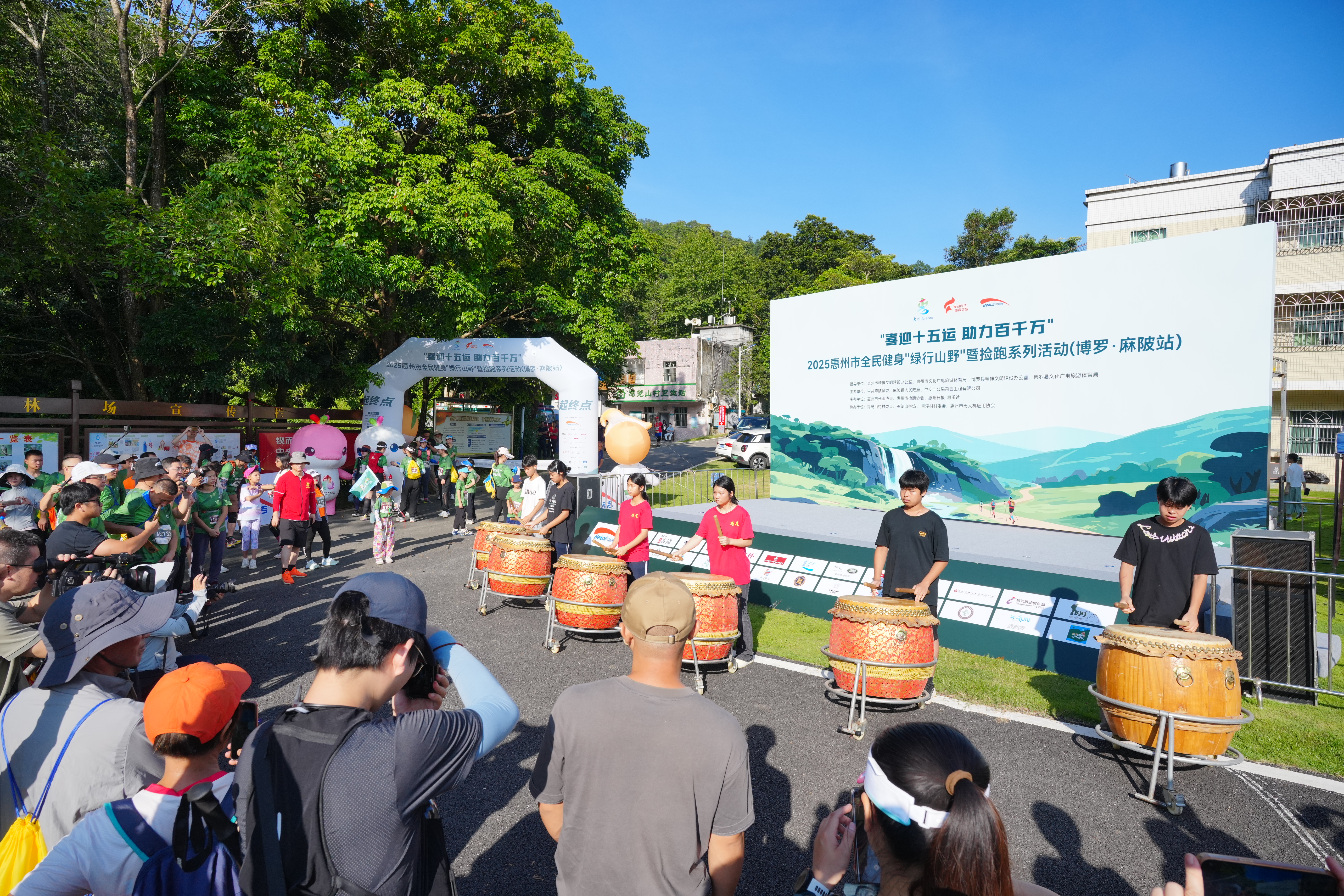 塘尾鑼鼓隊在2025惠州市全民健身“綠行山野”暨撿跑系列活動(博羅·麻陂站)啟動儀式上表演。惠州日報記者周楠 攝