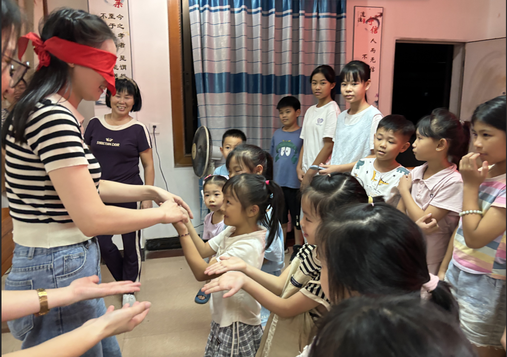 “七夕又叫什么?”“七夕是一個怎樣的節(jié)日?”……當(dāng)天,在活動中,志愿者通過互動問答,引導(dǎo)孩子們了解七夕節(jié)的文化內(nèi)涵,從“牛郎織女”的愛情故事延伸到家庭中的親情守護,傳遞“愛與陪伴”的核心理念。在《牽手》游戲中,家長與孩子輪流蒙眼尋找彼此的手,在歡笑與相擁中增進信任與默契;手工制作環(huán)節(jié),親子共同完成“愛捶”小工具,孩子們現(xiàn)場為父母捶背,用行動表達感恩與關(guān)愛。