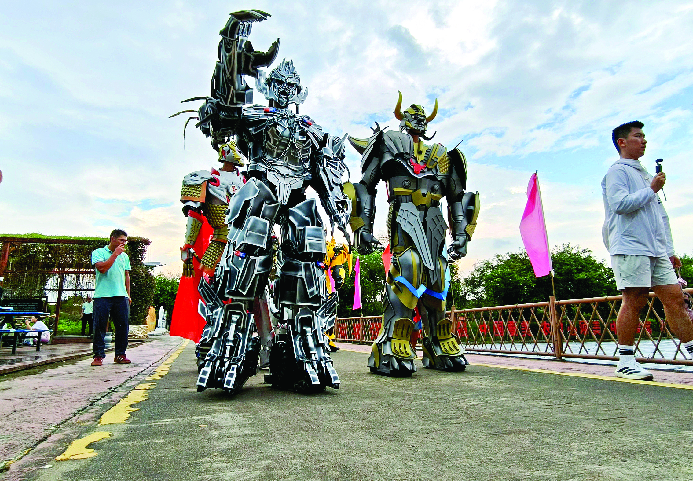 大黃蜂、擎天柱、威震天、鋼鐵俠……10月1日~8日,廣東航天農(nóng)業(yè)科技生態(tài)園將開展“未來紀(jì)元·AI機(jī)甲嘉年華”活動(dòng),大型實(shí)動(dòng)機(jī)甲秀將伴游人過假期。屆時(shí),整個(gè)景區(qū)將重構(gòu)為“AI機(jī)甲基地+航天基地”,引入兩三米高的大型可動(dòng)機(jī)甲,實(shí)現(xiàn)與游客真實(shí)互動(dòng)。記者了解到,大型可動(dòng)機(jī)甲由專業(yè)演員穿上機(jī)甲服扮演,有大小不同造型50多種。此次大型實(shí)動(dòng)機(jī)甲秀分晝夜雙模式。白天,科技沉浸互動(dòng)體驗(yàn);夜晚,機(jī)甲幻境舞蹈狂歡,燈光秀流光溢彩。景區(qū)晚上還有昆蟲燈光秀,有鳥兒、小昆蟲、蝴蝶等多種動(dòng)物造型燈,配上音樂和動(dòng)物的模擬聲音,將更加精彩靈動(dòng)。