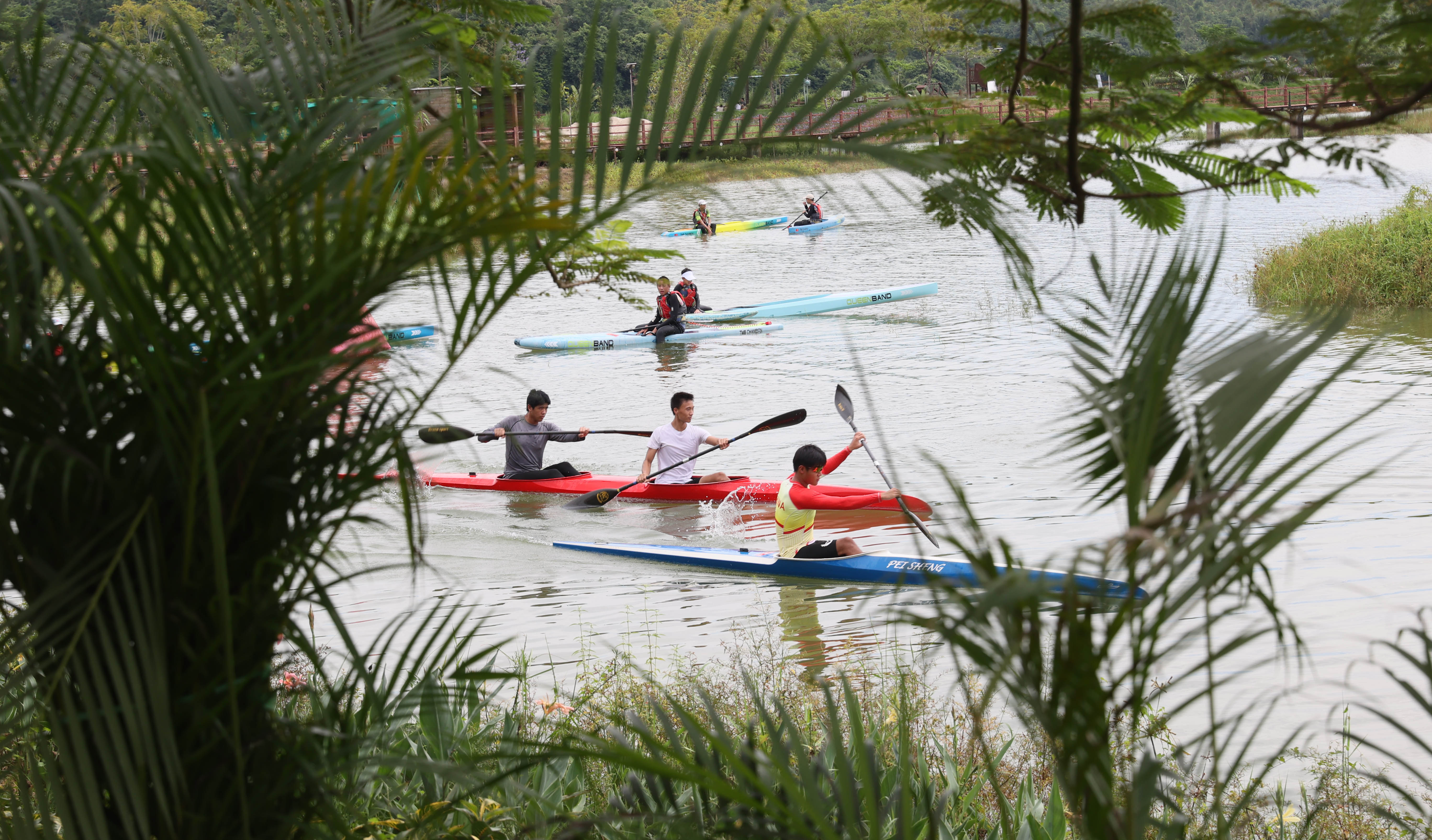 游客在郭前村玩皮劃艇項(xiàng)目。 惠州日報記者楊建業(yè) 攝