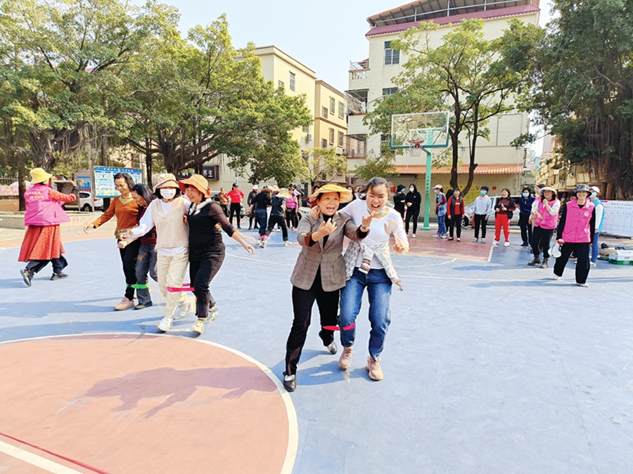 3月3日下午,惠州紅紫荊家庭服務(wù)大亞灣巖前中心在澳頭街道巖前村中心公園舉辦了“巾幗心向黨 奮進(jìn)新征程——‘提振精氣神,凝聚她力量’巖前村慶‘三八’婦女趣味運(yùn)動會”,基層?jì)D聯(lián)執(zhí)委、巾幗志愿者、村(居)婦女熱情參與。大家齊心協(xié)力,共同完成了“企鵝漫步”“兩人三足”“一圈到底”等比賽項(xiàng)目。活動現(xiàn)場,各隊(duì)成員熱情投入、奮勇拼搏,場上的加油聲和歡呼聲此起彼伏。