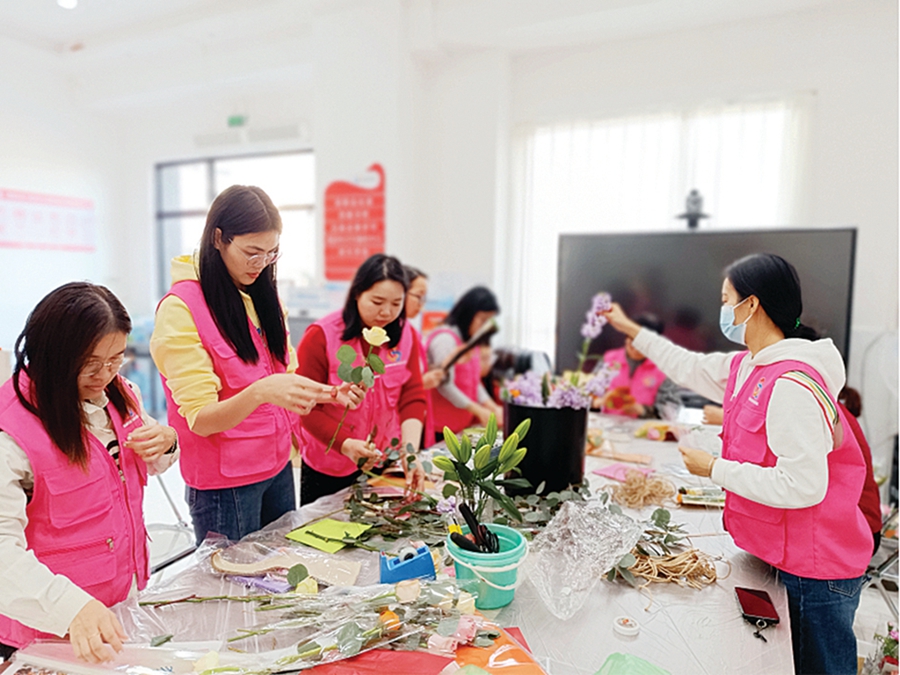 霞涌海韻社區(qū)開展花束DIY活動。