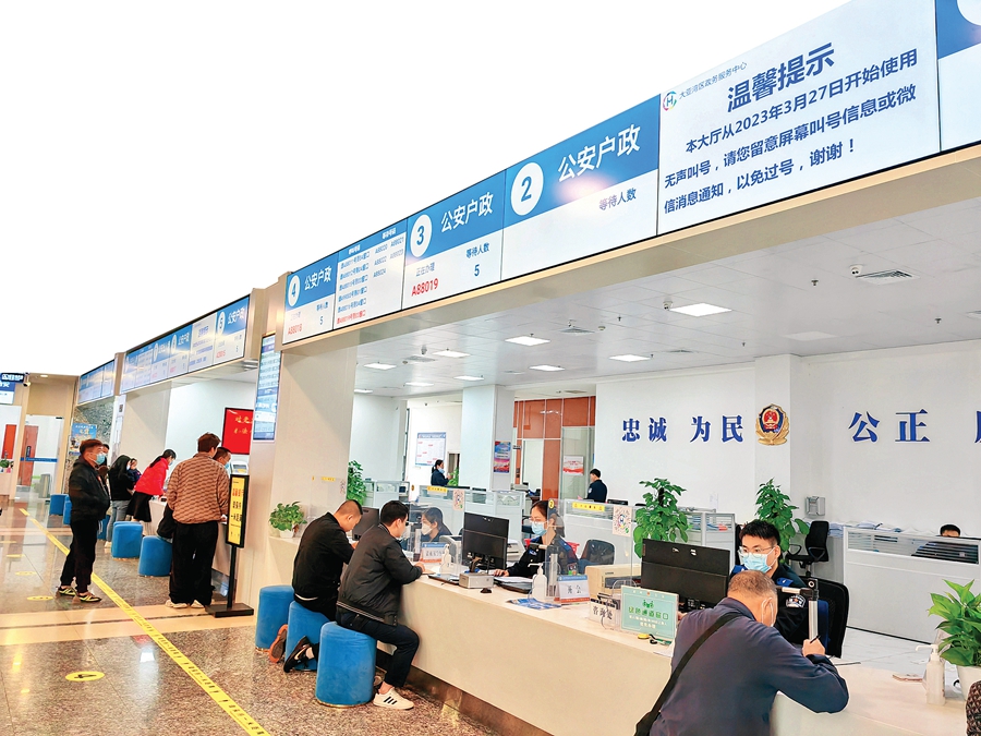 區(qū)政務(wù)服務(wù)中心啟用“無聲叫號(hào)”,窗口條屏實(shí)時(shí)顯示提醒信息。