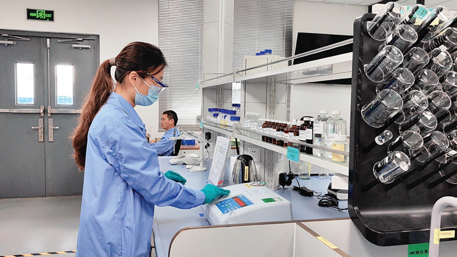 員工在科萊恩惠州工廠實(shí)驗(yàn)室作業(yè)。