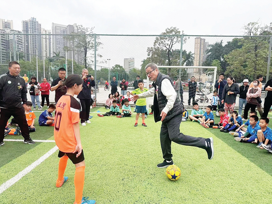 “踢球的時(shí)候要腳尖上翹,用足弓部分擊球的中后部……”在啟動(dòng)禮開(kāi)始前,一群小朋友圍坐在足球場(chǎng)里,聚精會(huì)神地聽(tīng)中國(guó)足球協(xié)會(huì)前副主席、中國(guó)足球名宿容志行分享訓(xùn)練經(jīng)驗(yàn)。容志行還面對(duì)面示范了顛球、傳球和過(guò)人等球技。“能夠看到職業(yè)運(yùn)動(dòng)員來(lái)教我們踢足球,我很開(kāi)心。”參加活動(dòng)的小朋友張依帆說(shuō)。