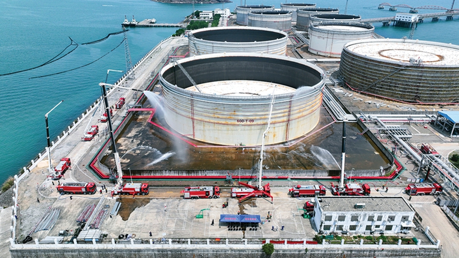 當(dāng)天,演練模擬在大亞灣馬鞭洲島中海油惠州石化油庫(kù)600-T-09罐浮盤密封圈油氣泄漏遇火花著火。企業(yè)員工發(fā)現(xiàn)災(zāi)情后立即啟動(dòng)應(yīng)急響應(yīng)預(yù)案,調(diào)動(dòng)島上惠州石化、惠州華德、惠州華灜3家企業(yè)專職消防隊(duì)前往撲救,同時(shí)撥打119報(bào)警電話。