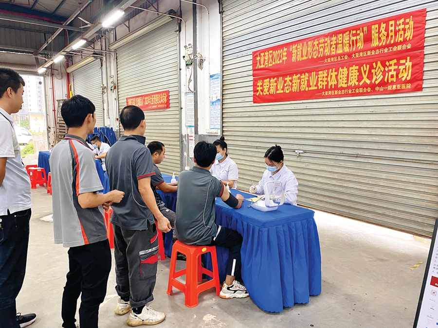 健康義診、困難職工摸底排查、法律宣傳……為切實發(fā)揮工會組織在新就業(yè)形態(tài)勞動領(lǐng)域的組織和服務(wù)職能,連日來,大亞灣區(qū)總工會、區(qū)新業(yè)態(tài)行業(yè)工會聯(lián)合會扎實開展2023年“新就業(yè)形態(tài)勞動者溫暖行動”服務(wù)月活動,切實幫助新就業(yè)形態(tài)勞動者解決急難愁盼問題。