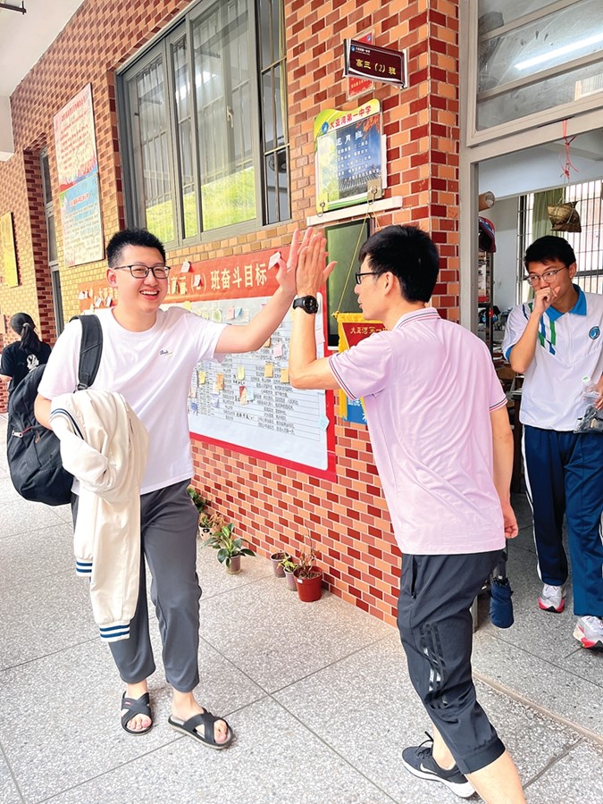 “老師相信你,一定沒(méi)有問(wèn)題的……”正式開(kāi)考前,在大亞灣第一中學(xué)里,教師張素丹與其他教師一起身穿紫色T恤與學(xué)生擊掌擁抱。“這身衣裳寓意著老師對(duì)學(xué)生們的祝福。”張素丹說(shuō),高考首日老師們身穿紅旗袍祝愿學(xué)子金榜題名、旗開(kāi)得勝;第二天身穿紫色T恤表達(dá)紫氣東來(lái)的祝福。“學(xué)生們精神面貌不錯(cuò),從他們的笑容里我看到了信心和對(duì)未來(lái)的期盼。”張素丹說(shuō)。