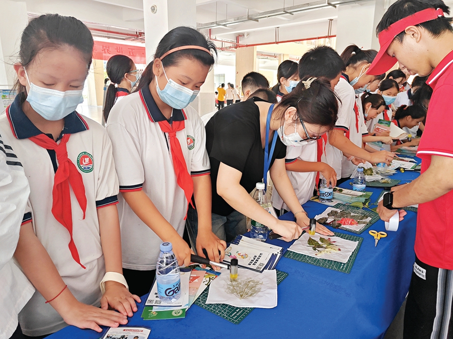 活動(dòng)現(xiàn)場(chǎng)設(shè)置了標(biāo)本區(qū)、作品區(qū)、展板區(qū)和游戲區(qū)。“這兩株是我們大亞灣本土的紅樹苗,分別是紅海欖和秋茄……”工作人員通過陳列環(huán)保主題展板,擺放環(huán)保科普宣傳資料、貝殼標(biāo)本、紅樹林幼苗以及展示小朋友的環(huán)保手工作品,展示了近年來大亞灣生態(tài)文明保護(hù)成果,引導(dǎo)小朋友增強(qiáng)環(huán)境保護(hù)意識(shí)。“我看到空瓶子會(huì)撿起來,然后放進(jìn)有‘可回收’標(biāo)志的垃圾桶里。”“回去后我會(huì)讓媽媽用洗菜的水澆花,循環(huán)利用水資源!”活動(dòng)結(jié)束后,小朋友們紛紛表示以后要爭(zhēng)當(dāng)環(huán)保小衛(wèi)士,為大亞灣的生態(tài)文明建設(shè)貢獻(xiàn)力量。