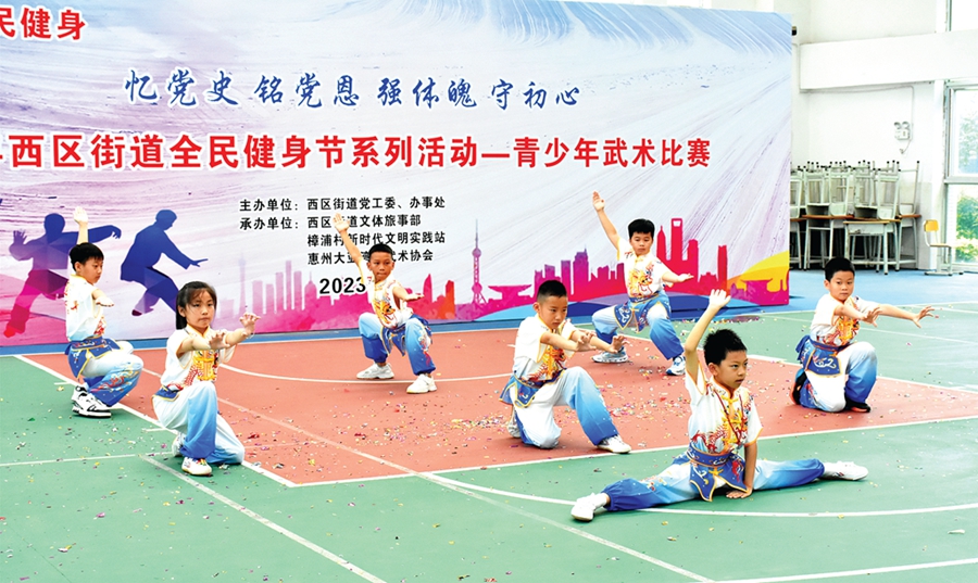 惠州日?qǐng)?bào)訊 (記者匡湘鄂 通訊員陳釔霖)日前,以“憶黨史 銘黨恩 強(qiáng)體魄 守初心”為主題的2023年西區(qū)街道全民健身節(jié)暨青少年武術(shù)比賽在大亞灣西區(qū)樟浦小學(xué)(新校區(qū))運(yùn)動(dòng)館舉行,來自西區(qū)街道8所學(xué)校的8支代表隊(duì)參加了比賽。