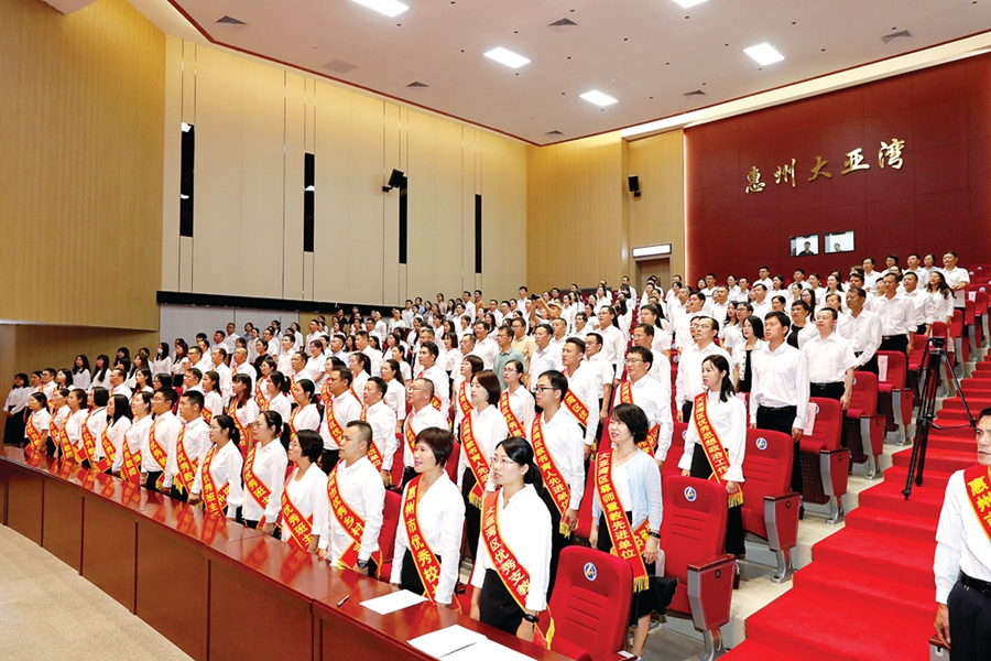 大亞灣開發(fā)區(qū)召開慶祝教師節(jié)大會表彰一批先進(jìn)單位和先進(jìn)個人。 惠州日報記者匡湘鄂 攝