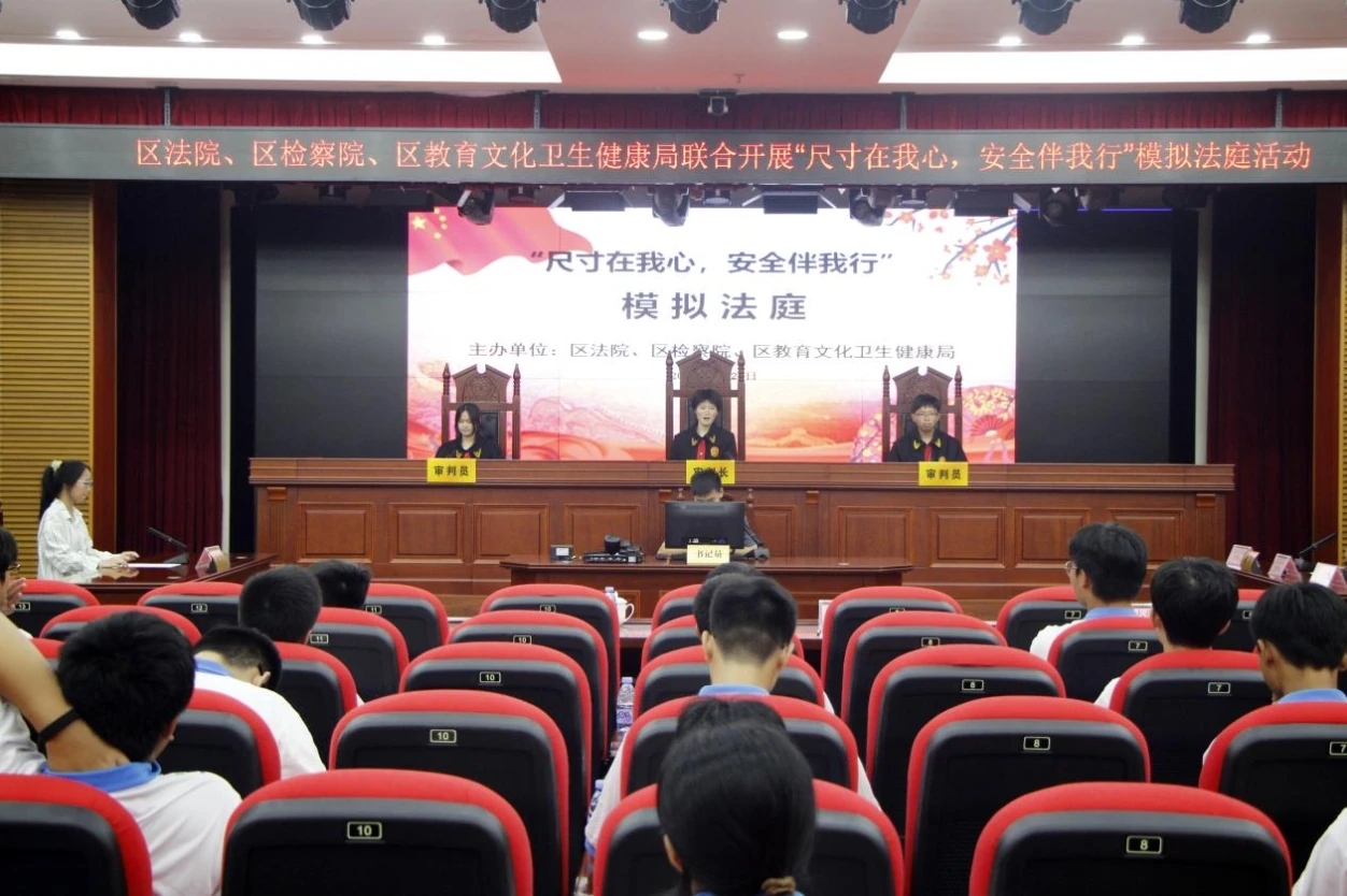 惠州日?qǐng)?bào)訊 (記者張宇琪 通訊員章婷)“請(qǐng)全場(chǎng)肅靜,現(xiàn)在宣布法庭紀(jì)律。”9月21日,大亞灣開發(fā)區(qū)人民法院與區(qū)檢察院、區(qū)教育文化衛(wèi)生健康局聯(lián)合舉辦了一場(chǎng)別開生面的“尺寸在我心,安全伴我行”模擬法庭活動(dòng),大亞灣第一中學(xué)40余名學(xué)生走進(jìn)區(qū)法院,沉浸式體驗(yàn)法庭庭審過(guò)程,近距離感受法律的神圣與威嚴(yán),切實(shí)增強(qiáng)懂法、守法、用法的法治意識(shí)。