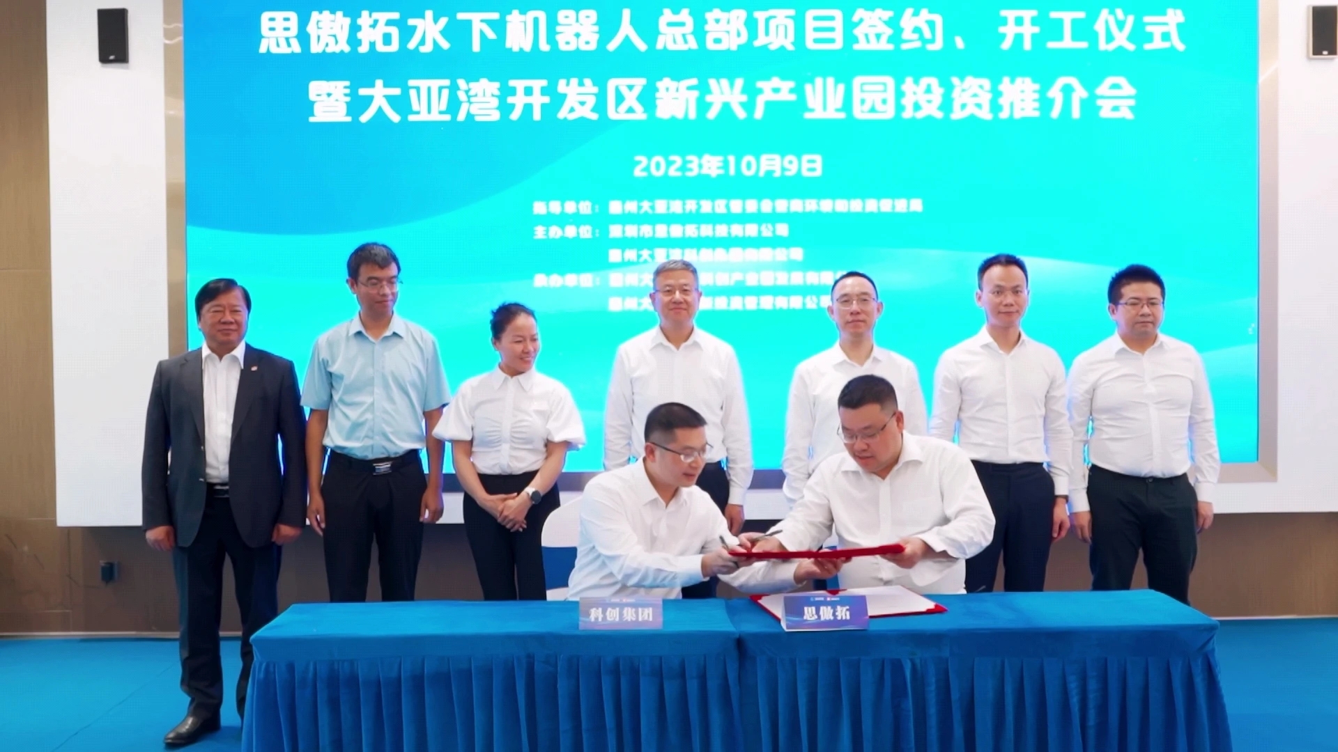 活動(dòng)中,大亞灣區(qū)屬一級(jí)國(guó)有企業(yè)惠州大亞灣科創(chuàng)集團(tuán)有限公司(以下簡(jiǎn)稱“科創(chuàng)集團(tuán)”)與深圳市思傲拓科技有限公司(以下簡(jiǎn)稱“思傲拓科技”)簽署《大亞灣思傲拓水下機(jī)器人總部項(xiàng)目合作協(xié)議》及《增資認(rèn)購(gòu)協(xié)議》,實(shí)現(xiàn)基金投資招商、項(xiàng)目簽約即開(kāi)工。
