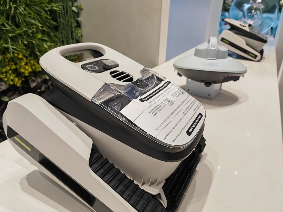 現(xiàn)場(chǎng)展示的思傲拓科技研發(fā)生產(chǎn)的泳池機(jī)器人。