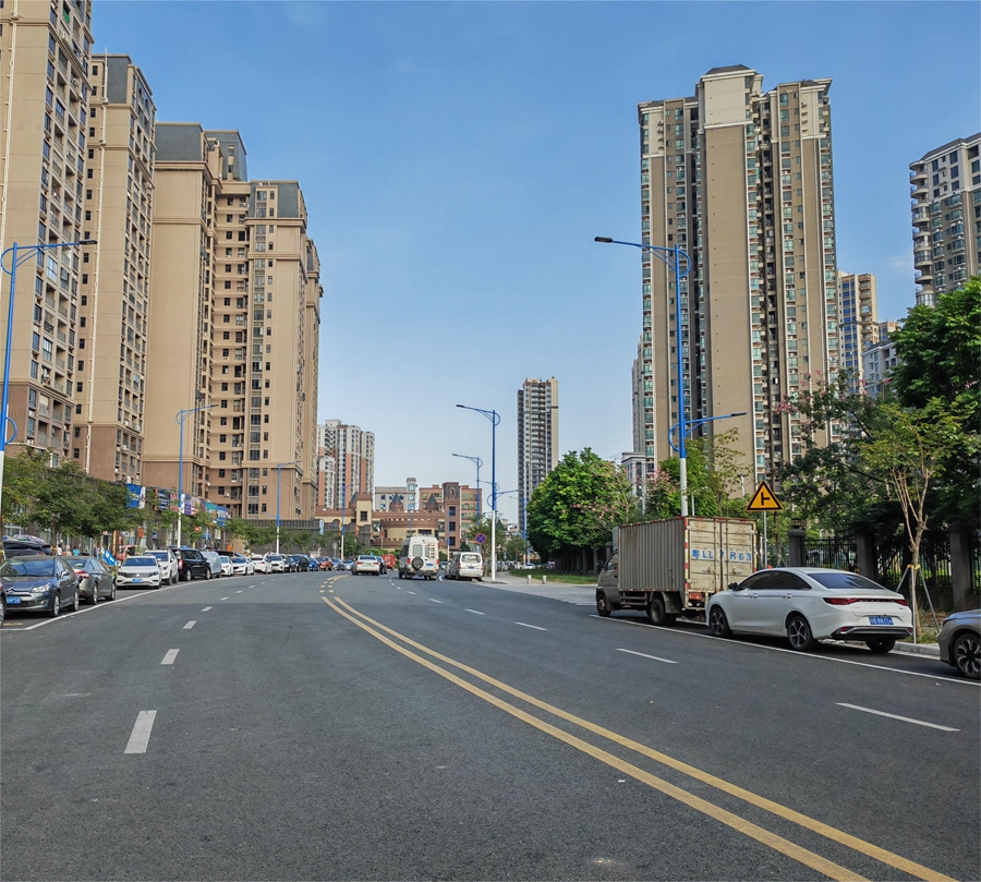 華南國際建材市場是大亞灣區(qū)超大規(guī)模的建材零售中心和出口基地,每天貨物運輸車輛繁忙,且周邊小區(qū)多,兼有大型商超,人口密度較大。華泰路、華貴路這兩條東西走向的道路,連接正在修建中的龍山十路。